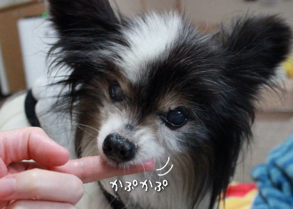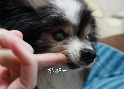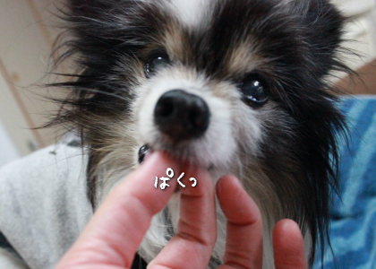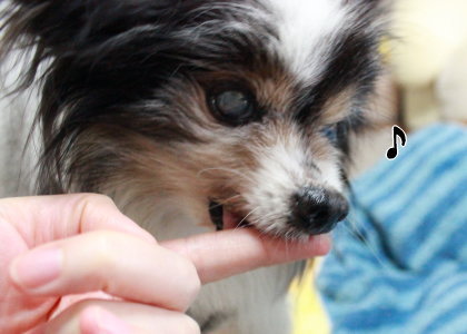 パンパンの時と同じ反応でママの指をパクン!